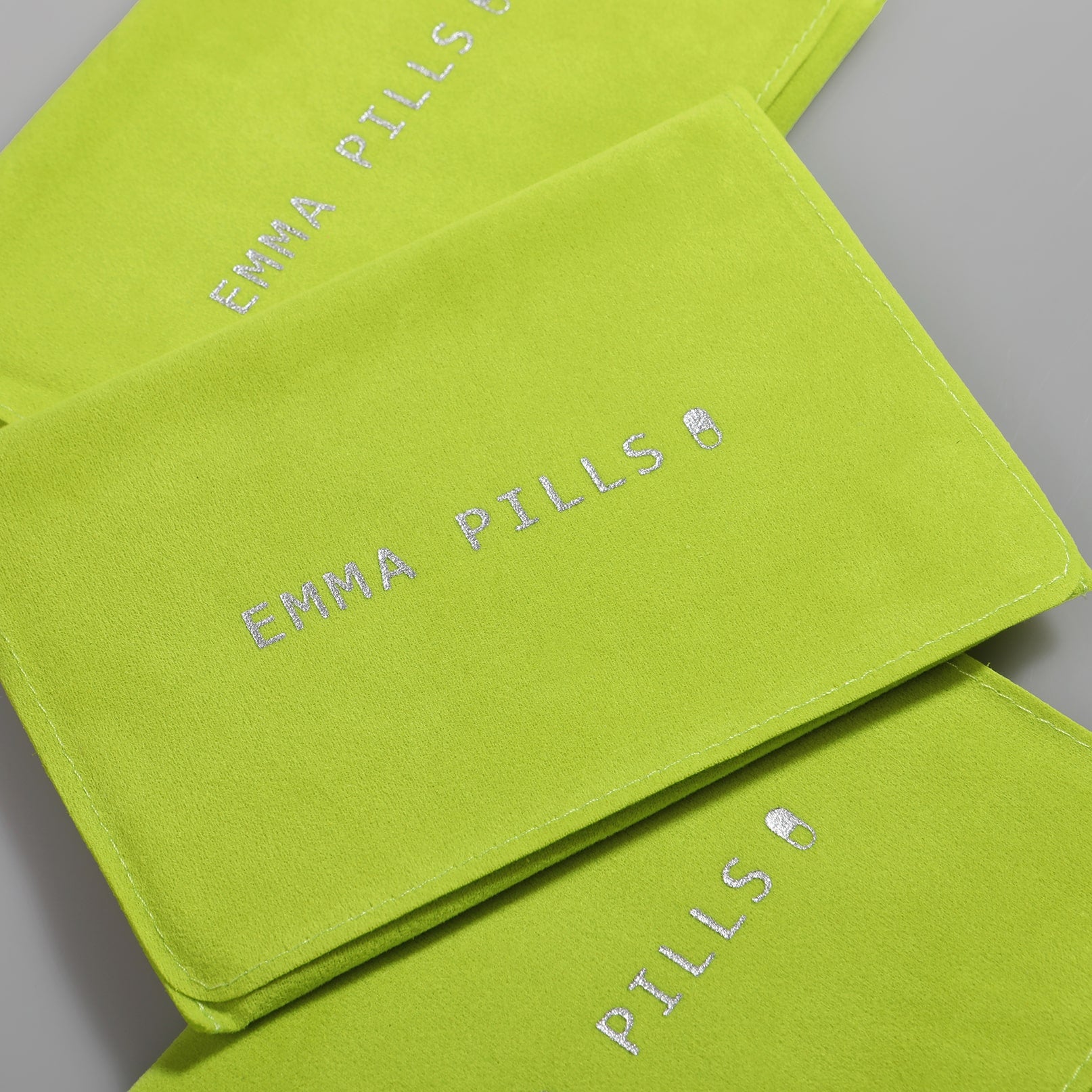 Emma Pills jewellery box is embossed with silver Emma Pills logo. Made from soft velvet, it has plenty of compartments to keep everything from necklaces to earrings, bracelets and rings neat and organised.